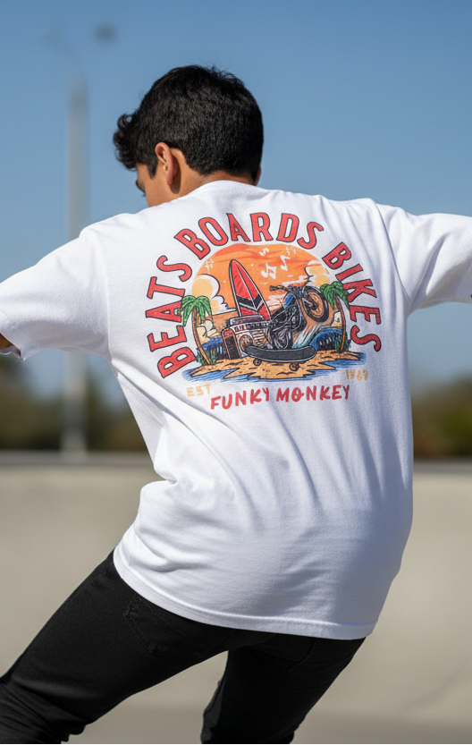 Funky Monkey: Bikes, Boards & Beats (WHITE)